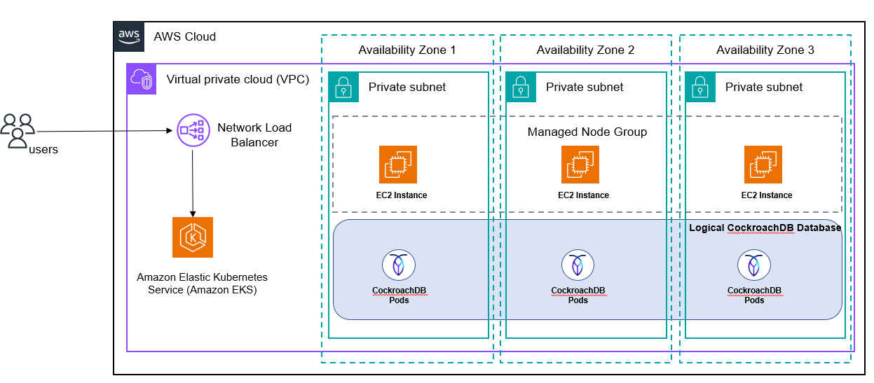 This pattern provides a Terraform Module that can be used to deploy CRDB multi node database cluster in a single EKS cluster using CockroachDB Kubernetes Operator. It his also uses cert-manager to secure node communication with TLS certificate.